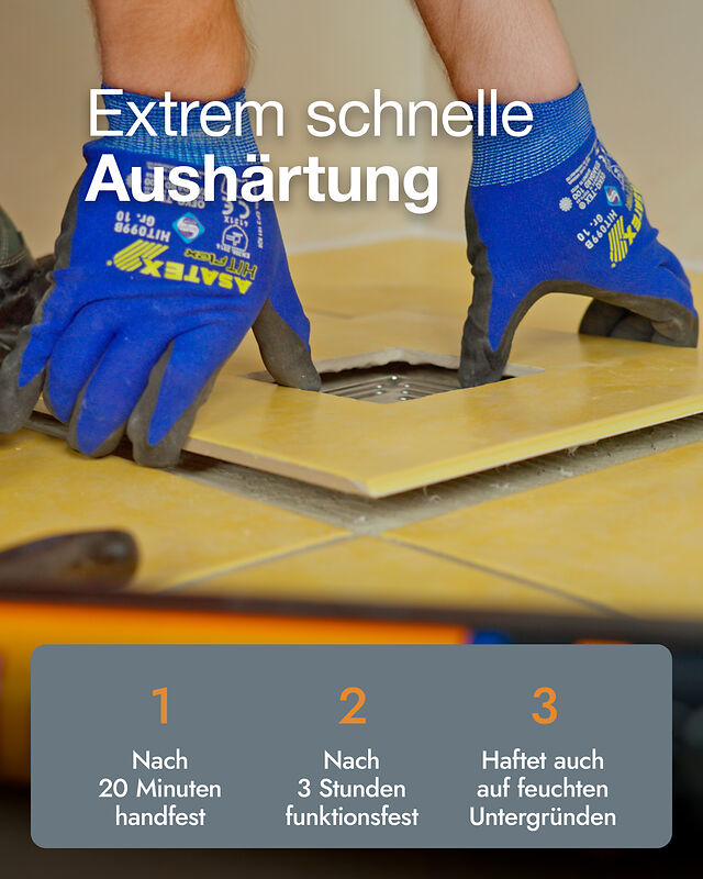 - Schnelles Weiterarbeiten bei dünner Klebeschicht und diffusionsoffenen Materialien möglich
