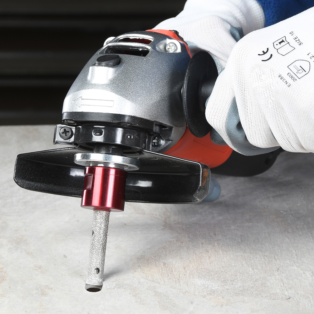 Dank des M14-Gewindes kann der Fräser direkt auf handelsüblichen Winkelschleifern montiert werden. Das Werkzeug ist für Trockenbearbeitung ohne Wasser konzipiert und eignet sich ideal für schnelle Anpassungen auf der Baustelle.