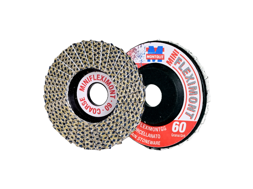 Die Montolit MINIFLEXIMONT GG ist eine kompakte Diamant-Fächerscheibe mit grober Körnung, speziell entwickelt für den schnellen Materialabtrag bei der Bearbeitung von Feinsteinzeug, Granit, Keramik, Marmor, Glas und Naturstein.