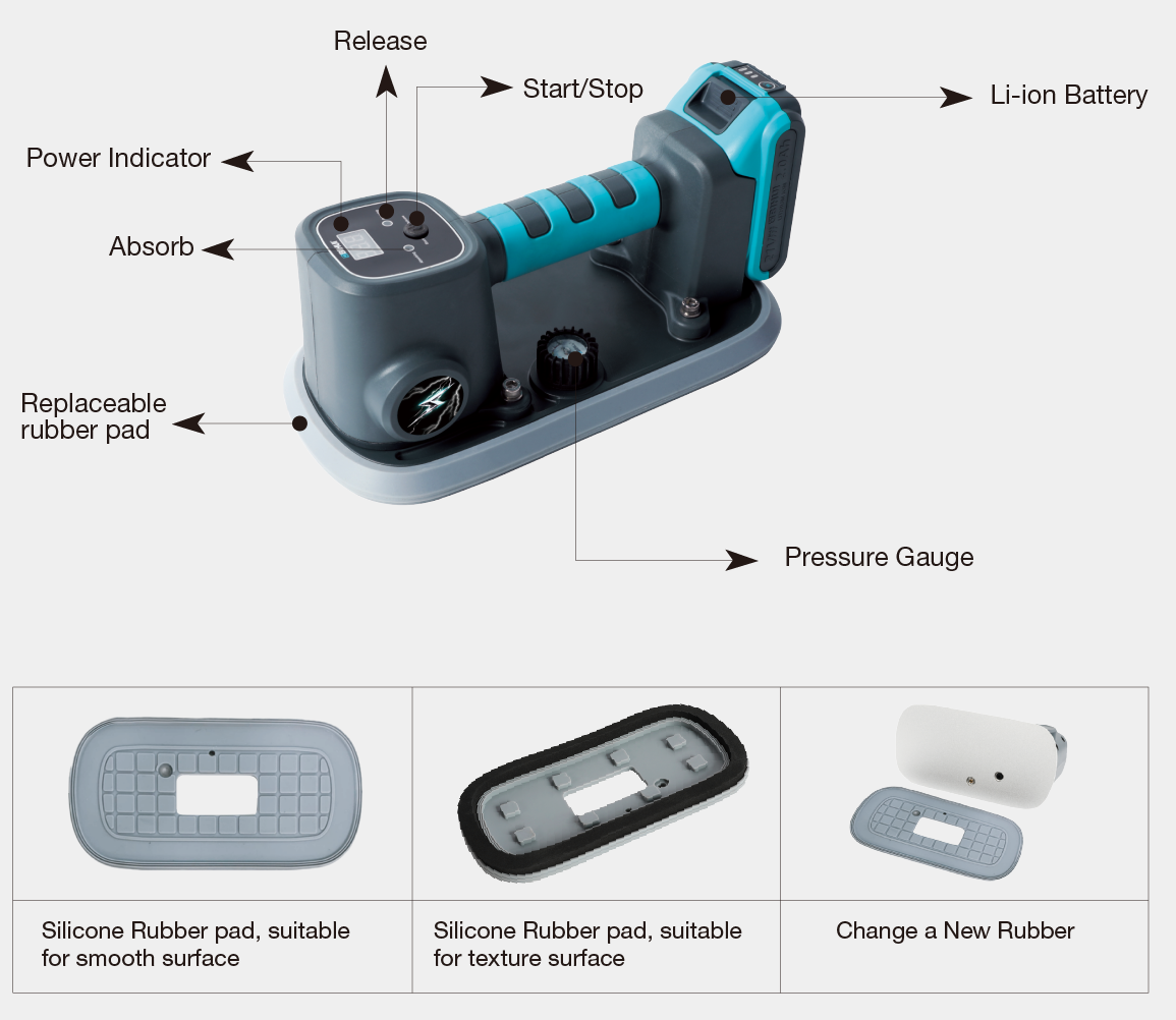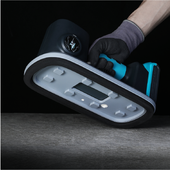 Das integrierte digitale Manometer zeigt den exakten Unterdruck an und garantiert so eine zuverlässige Kontrolle während des Einsatzes. Dank der automatischen Nachpumpfunktion wird der Unterdruck permanent aufrechterhalten – für maximale Haftung auch bei längeren Arbeitsintervallen.